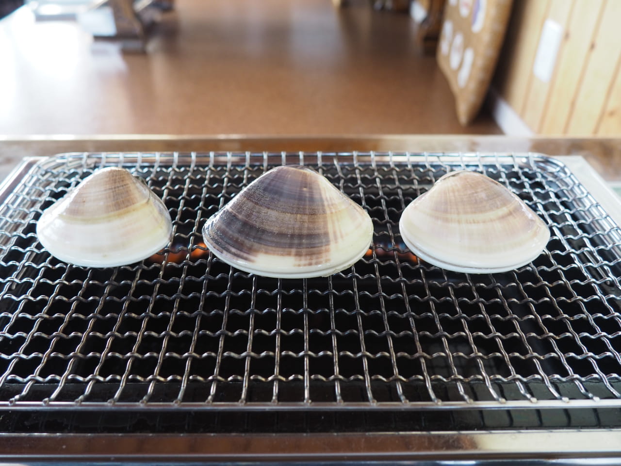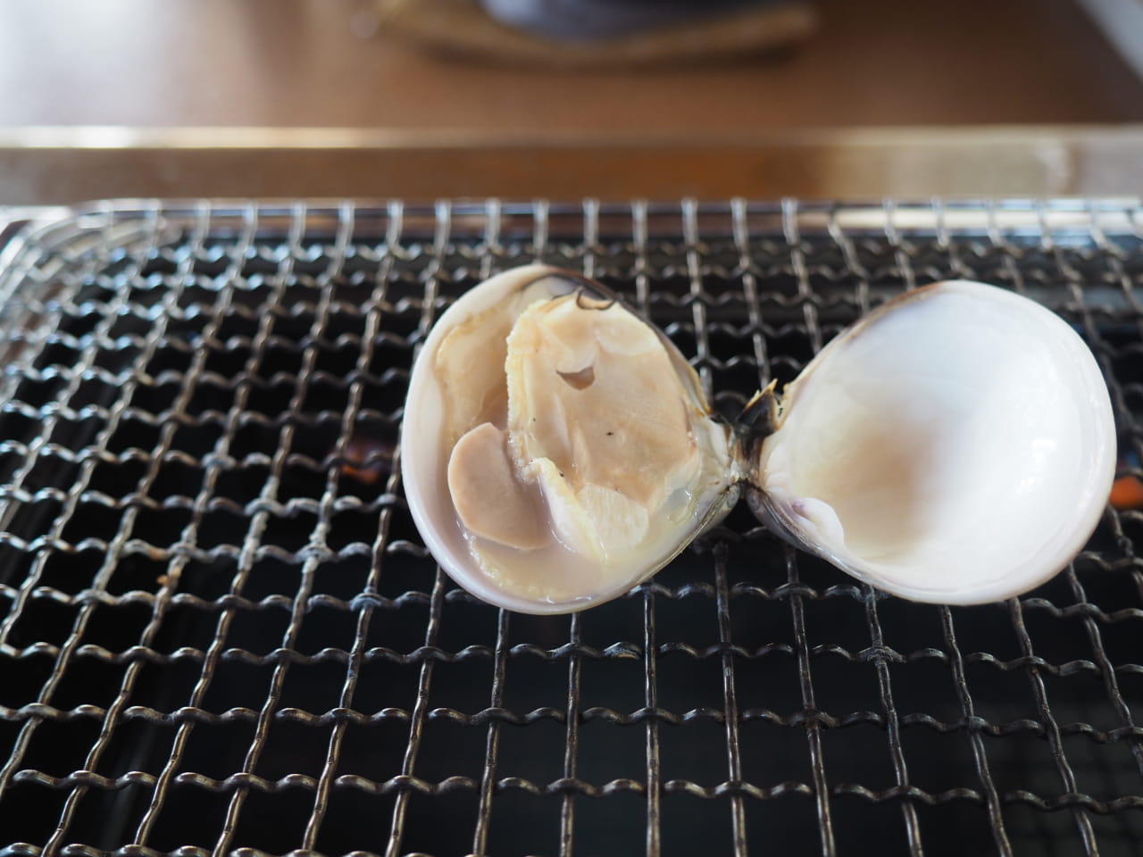 3分〜5分程度網の上で火を通すとパカっと貝が開く。